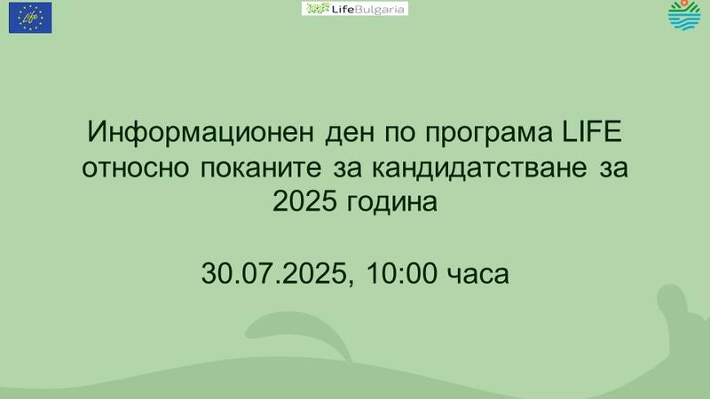 На 30 юли 2025 г. Националното звено за контакт организира информационен ден по поканите за кандидатстване по програма LIFE – основния инструмент на ЕС за финансиране на проекти в областта на околната среда и климата.